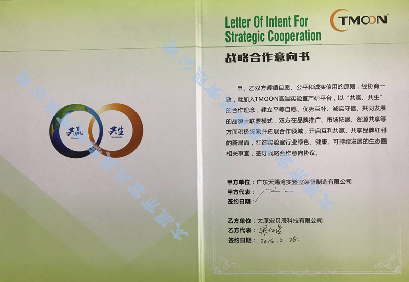 热烈祝贺我司与国内实验室行业第一品牌TMOON设备生产商——广东天赐湾实验室装备制造有限公司签署战略合作关系。至此,我司将成为TMOON品牌大家庭的一员,为山西的实验室行业提供中高端实验室设备和尽善尽美的服务。