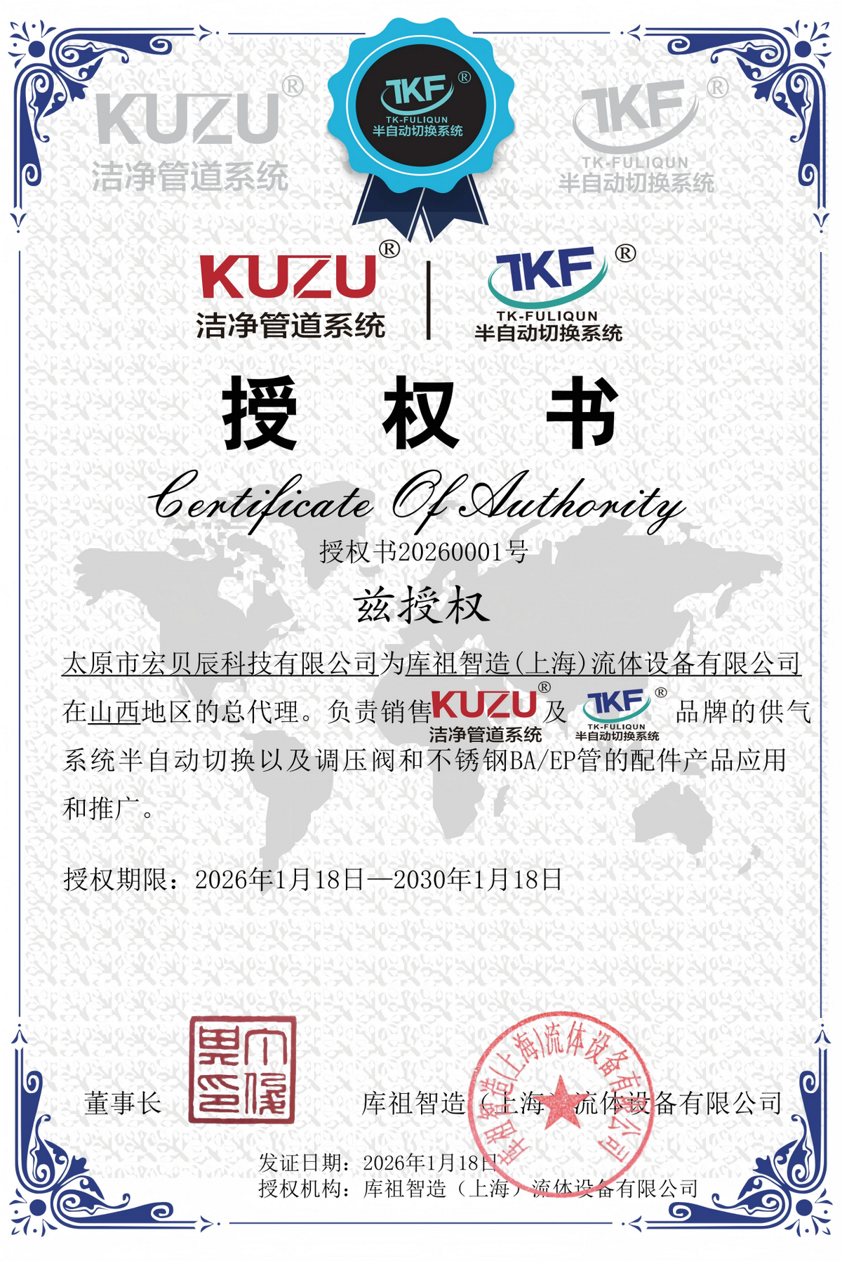 近日,太原市宏贝辰科技有限公司正式获颁授权,成为库组智造(山海)流体设备有限公司在山西地区的独家总代理。此次授权标志着双方建立深度战略合作伙伴关系,太原市宏贝辰科技有限公司将全面负责库组品牌核心产品在山西区域的市场拓展、产品销售、应用落地及推广服务工作。